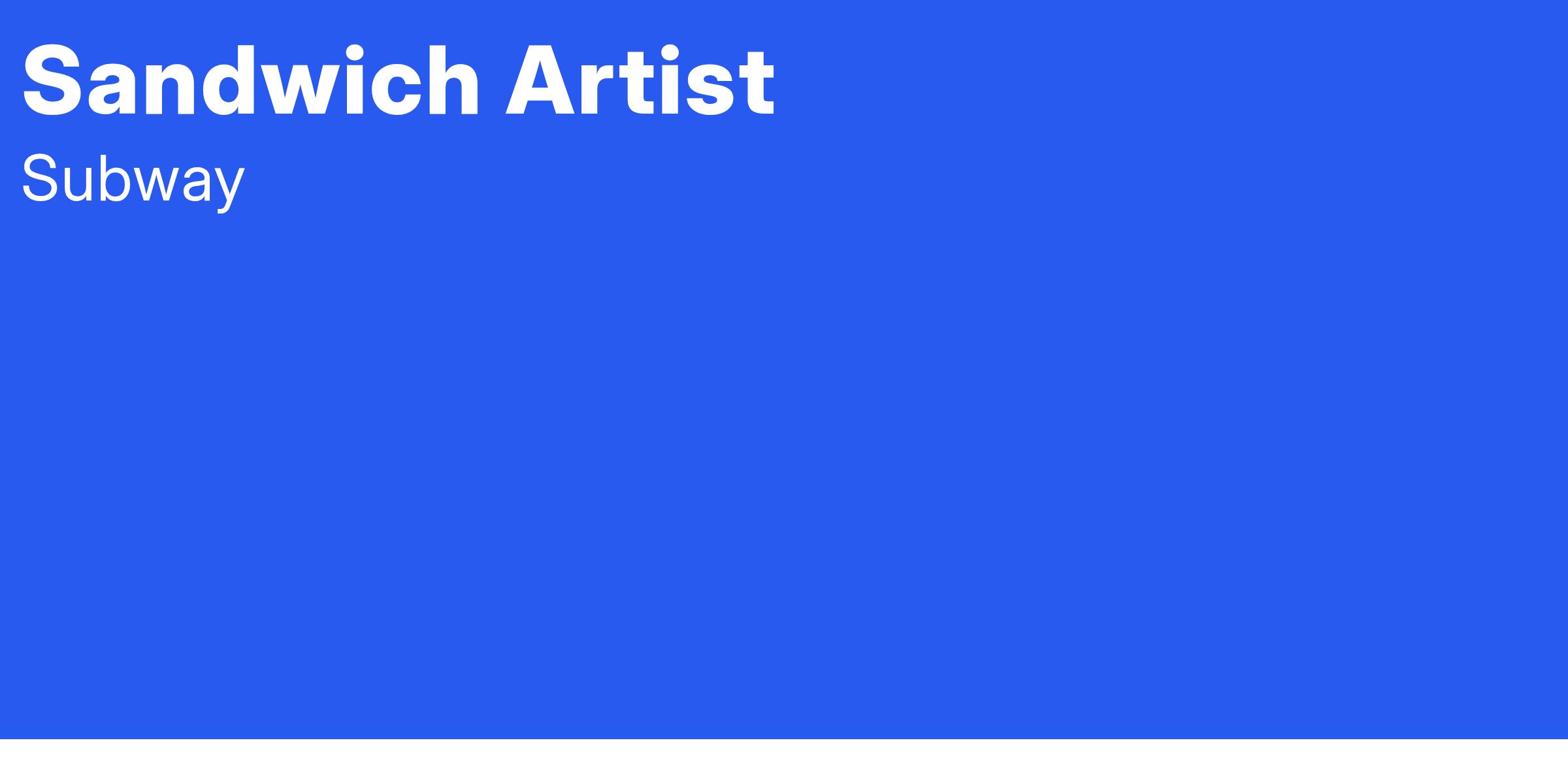 As part of the Subway® Team, you as a Sandwich Artist ® will focus on four main things: